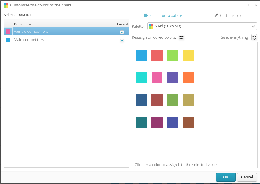 Color customization using the icon is also available for charts with multiple categories.